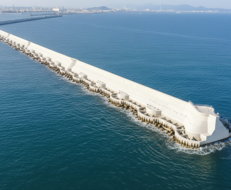 Coastal construction / Breakwaters / Piers / Seawalls / Offshore plants / Marine structures (tetrapods, artificial reefs) / Offshore wind turbine foundations, etc.