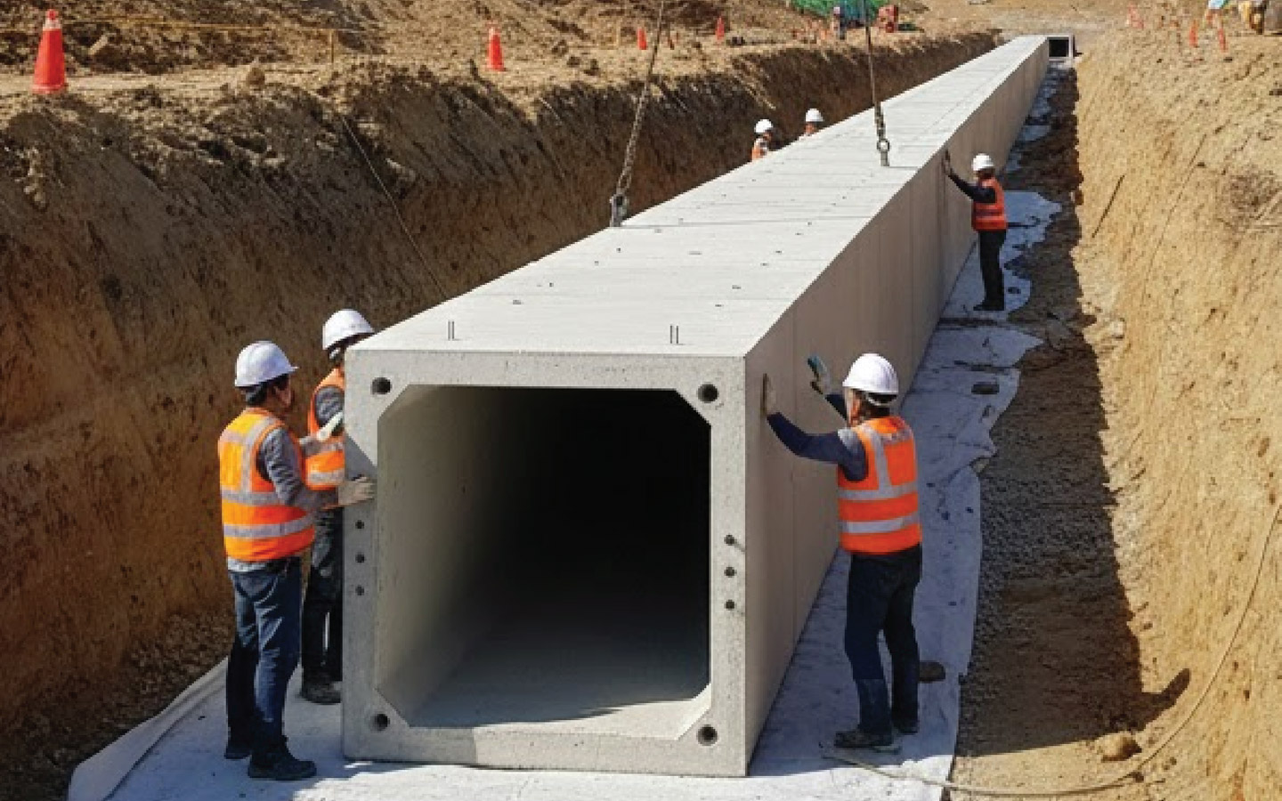 • Applying GFRP to PC culvert components buried underground or above ground, such as manholes, sumps, and drainage ditches, enhances chemical resistance and creates a corrosion-resistant structure.