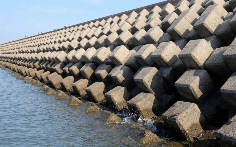 • Entornos marinos extremos: Las instalaciones portuarias (rompeolas, muelles, muros de contención, plantas costeras, tetrápodos, etc.) están constantemente expuestas a entornos marinos extremos, como el agua de mar, la salinidad transportada por el viento, la energía de las olas y las variaciones de las mareas. La durabilidad de las estructuras de hormigón (concreto) es un factor clave directamente relacionado con la operación y la seguridad de las instalaciones.