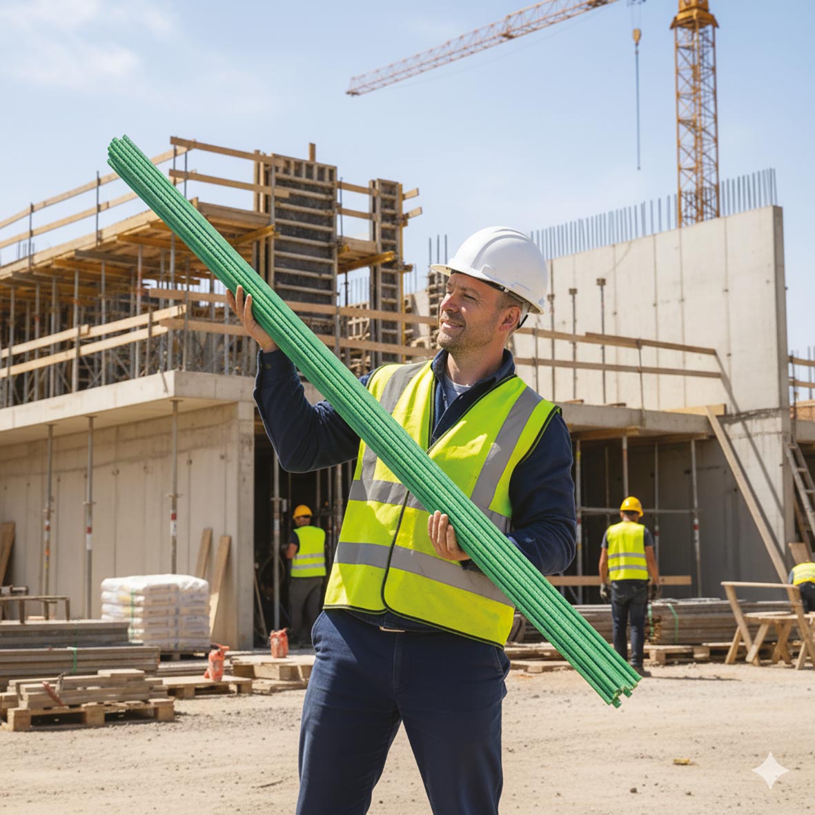 Environ un quart du poids des barres d’armature en acier, ce qui facilite grandement la manutention et le transport.