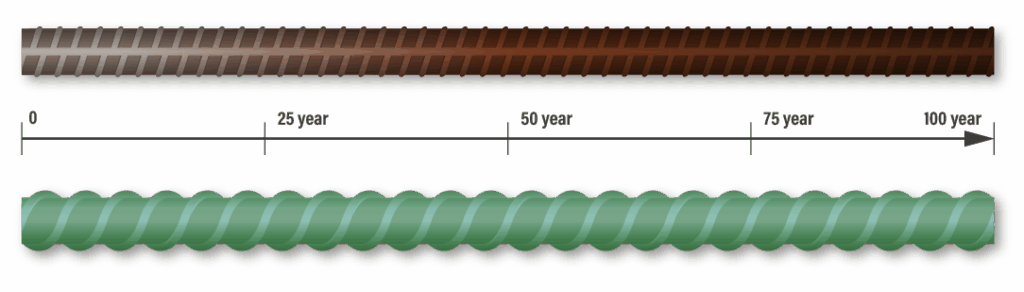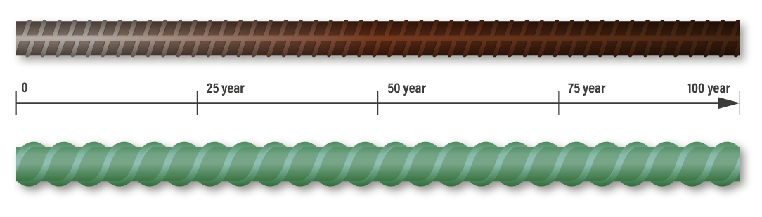 Memperpanjang umur struktur di lingkungan korosif lebih dari 100 tahun.