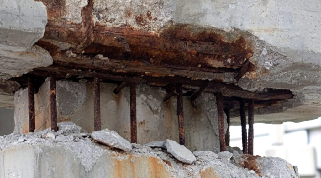 Tegangan ini menyebabkan keretakan, pengelupasan, dan delaminasi. Sebuah fenomena yang dikenal sebagai kerusakan beton akibat korosi.